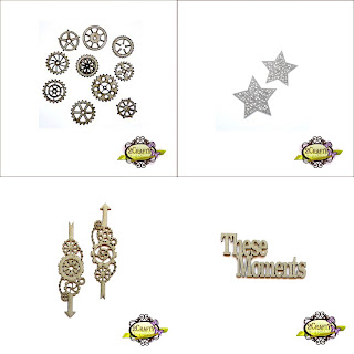 I left the "Steampunk Gears", behind the frame, to their natural chipboard color, as I found it blended very well with the shades I had chosen for the other chipboard pieces.